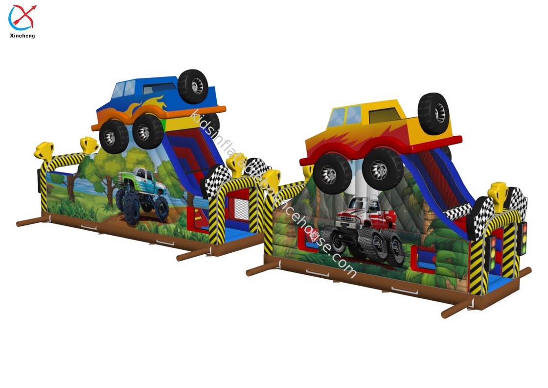 Fabrik-Hindernislauf Sprunghaus-Auto-Rennen aufblasbare Hinderungslauf mit Rutsche