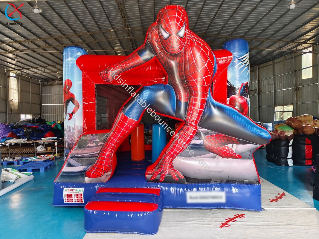 Diese kommerzielle Spider-Man-Hüpfburg im Helden-Rot-Design wurde speziell für die Unterhaltung und Freizeit von Kindern entwickelt.
